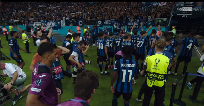 I tifosi festeggiano la squadra alla fine, poi la premiazione