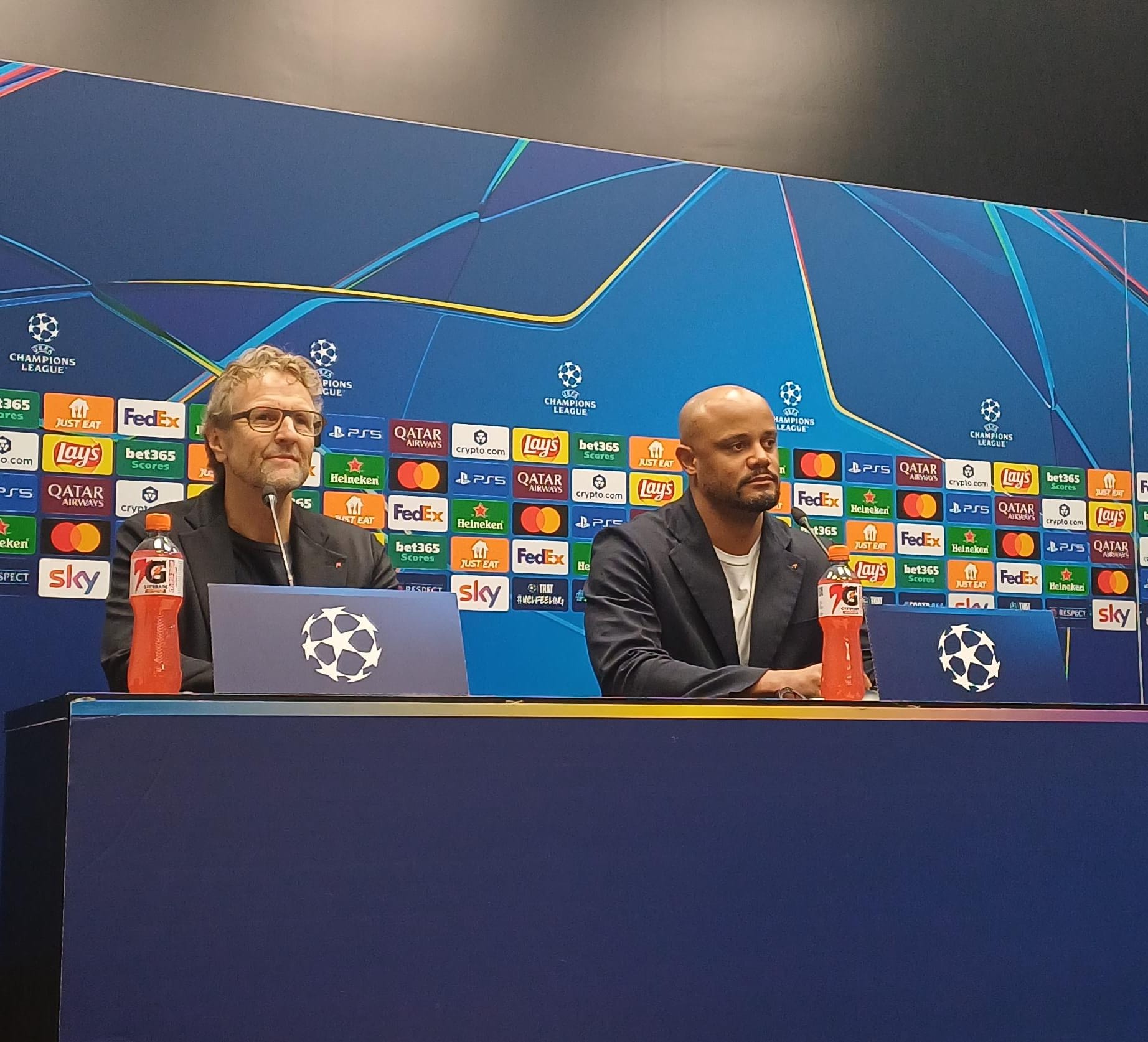 Mister Vincent Kompany e il difensore Josip Stanišic hanno appena rilasciato la loro conferenza stampa, per conto del Bayern Monaco, all’interno del nostro stadio, la News Balance Arena.