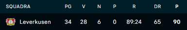 Un campionato che Wirtz e soci hanno stravinto, lasciando solo le briciole agli avversari: 90 punti, frutto di 28 vittorie e appena 6 pareggi.