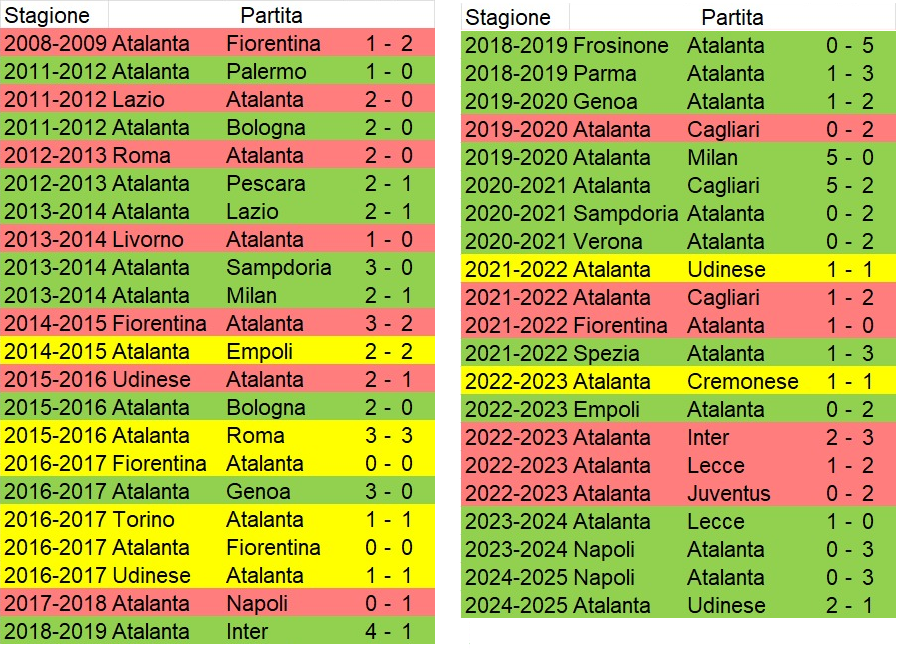 Sebbene tra queste partite ce ne furono di “indigeste” come la sopracitata prima volta (viene in mente la sconfitta di Firenze del 2021-22 con il gol annullato a Malinovskyi) le partite memorabili per i tifosi neroblu sono sicuramente di più, grazie al fatto che, delle 43 partite disputate a pranzo, l’Atalanta ne ha vinte 22, pareggiate 8 e perse “solo” 13. Nell’era Gasp spiccano sicuramente il 5-0 al Milan (19/20), il 4-1 all’Inter (18/19) e i due 0-3 di Napoli (23/24 e 24/25), mentre tornando indietro nel tempo difficile dimenticare il 2-1 sempre ai rossoneri del 2013/14 con l’eurogol di Ciccio Brienza al 96’.