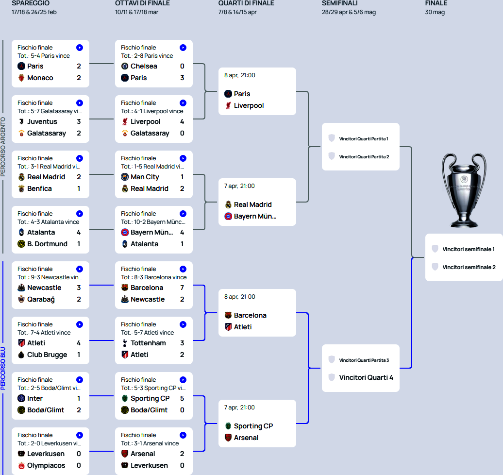 Il tabellone dei quarti di Champions - Road to Budapest