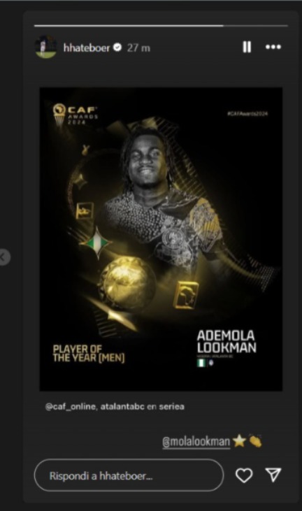 Tutti i compagni di Mola forniti di socials hanno riservato un post per Lookman pallone d'oro africano. Con non molta fantasia come dimostrano tante repliche di una delle immagini ufficiali ma, insomma, basta il pensiero.