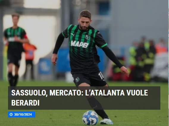 Una clamorosa voce di mercato sta facendo il giro sul web e soprattutto può considerarsi un vero e proprio boomerang per la formazione di Fabio Grosso, reduce dal pari contro la Juve Stabia (2-2) nell’ultimo turno di campionato. Il protagonista, è manco a dirlo Domenico Berardi, che, da quando è rientrato in campo ha riacceso l’attenzione di club importanti, tra cui l’Atalanta, che è seriamente interessata ad acquisire le prestazioni sportive dell’attaccante calabrese. Fonti vicine al calciatore, rivelano che, lo stesso Berardi, avrebbe già dato il suo ”ok” al trasferimento a Bergamo nella finestra di mercato invernale. Sicuramente, è ancora presto per parlare di trasferimenti, sarà la ”solita” voce che interessa ancora una volta l’asso neroverde, ma a quanto pare, qualcosa si sta muovendo attorno al numero 10 di Cariati.