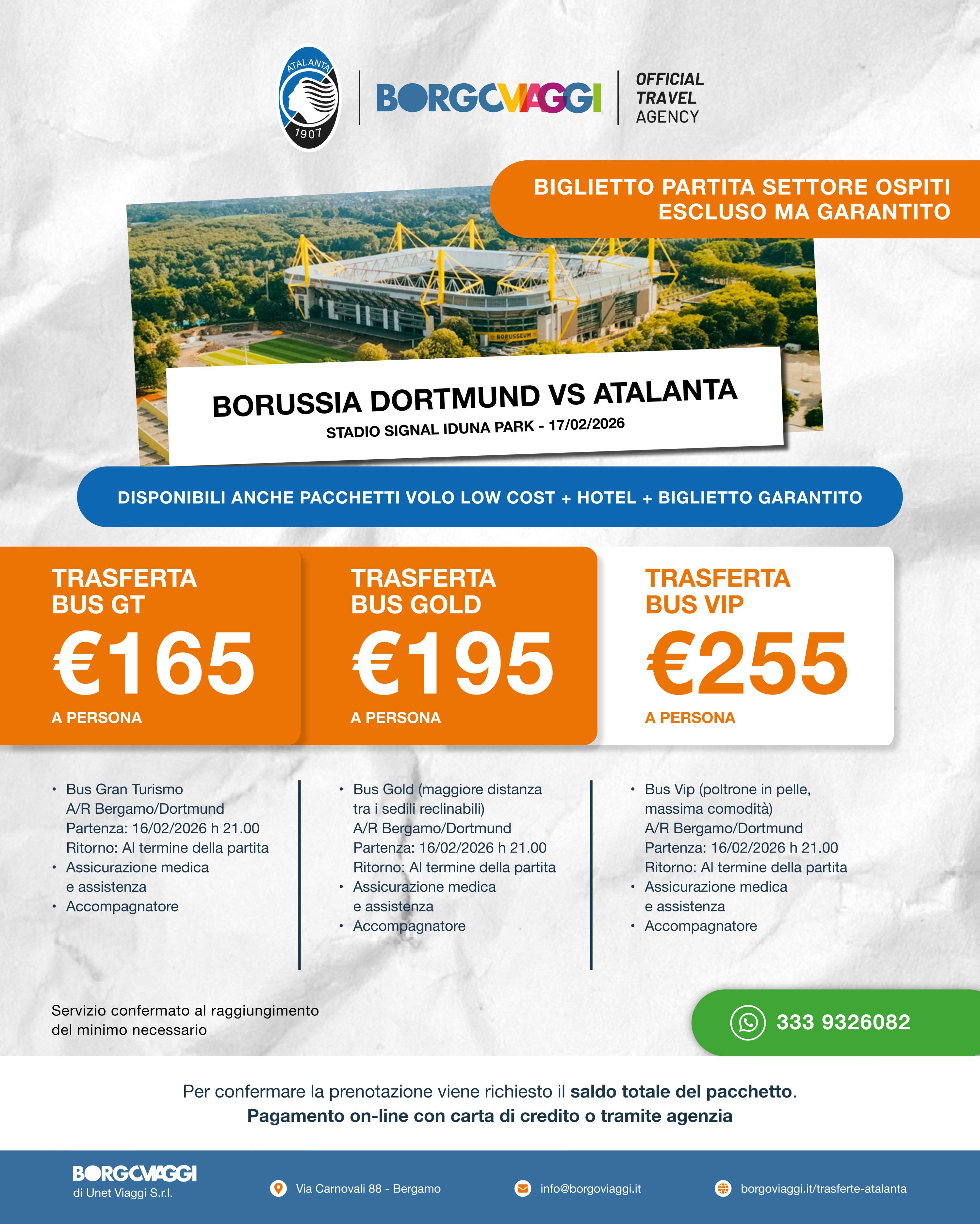 BORGOVIAGGI VOLO CHARTER BORUSSIA - ATALANTA: