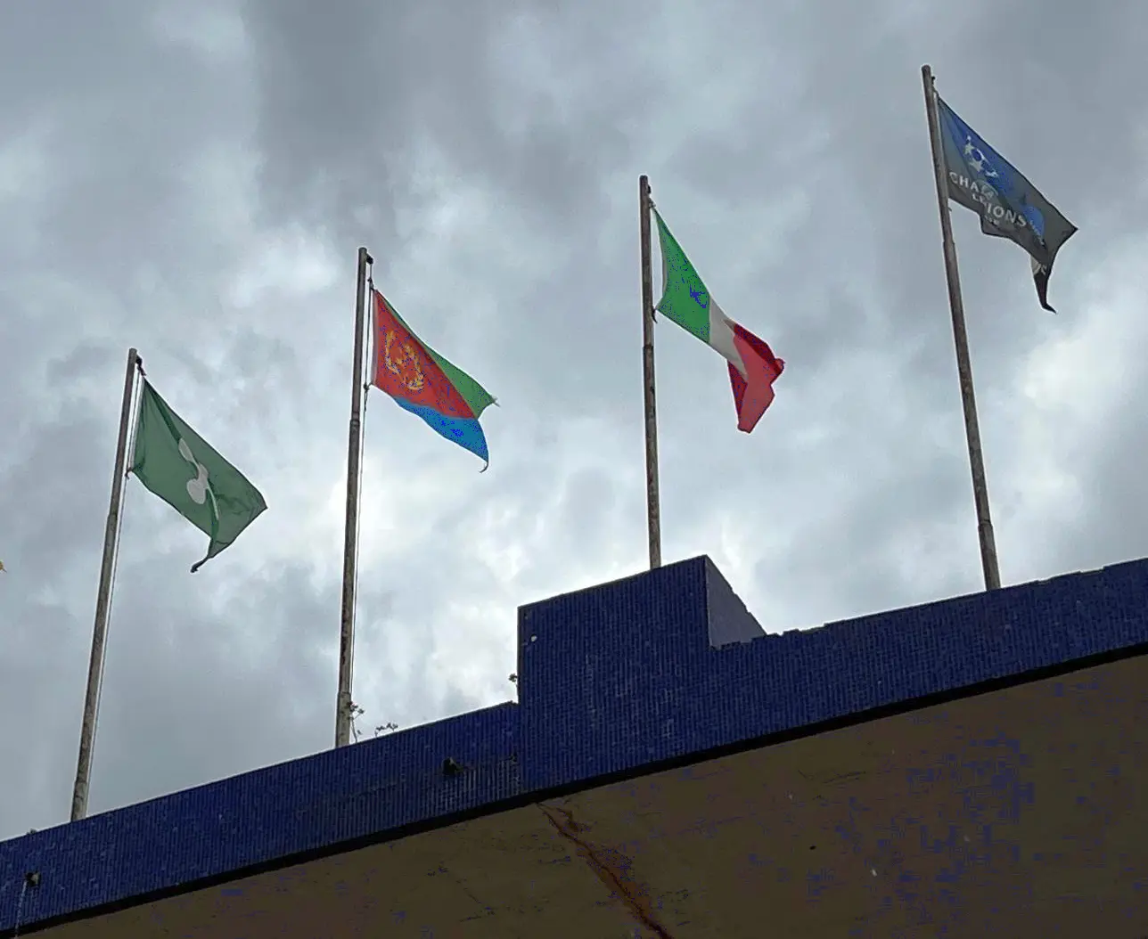Fare turismo in Africa e per caso capitare a guardare un tetto di un capannone industriale ad Asmara, capitale dell'Eritrea con bandiere di Lombardia, Eritrea, Italia ed... Atalanta !