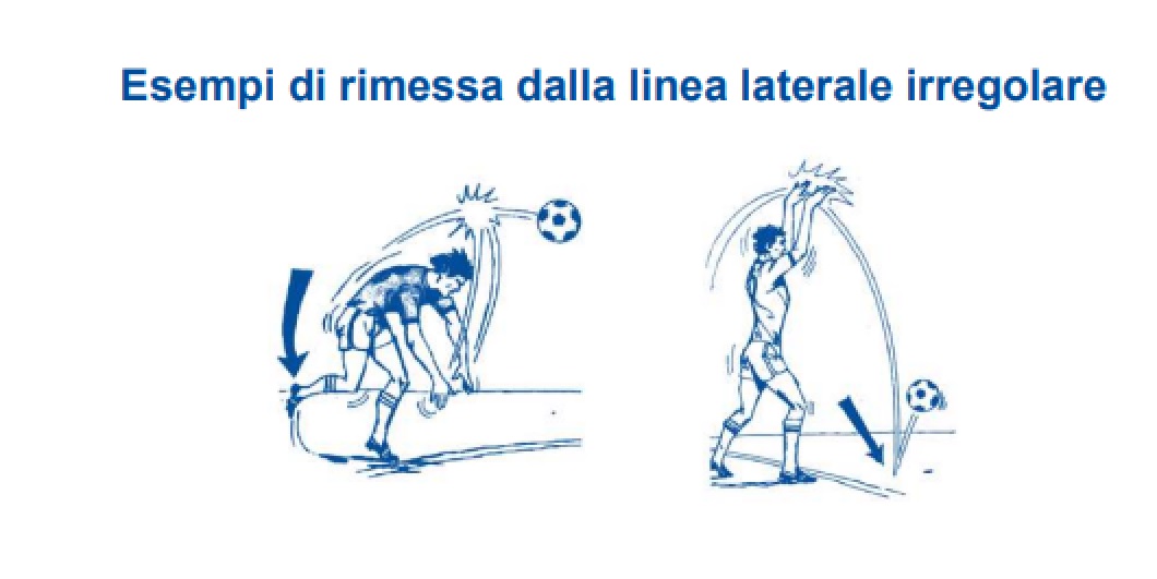 1. PROCEDURA Al momento di lanciare il pallone, il calciatore incaricato deve: • stare in piedi rivolto verso il terreno di gioco • avere, almeno parzialmente, i due piedi sulla linea laterale o sul terreno all’esterno di questa • lanciare il pallone con entrambe le mani da dietro e al di sopra della testa, dal punto in cui è uscito dal terreno di gioco.