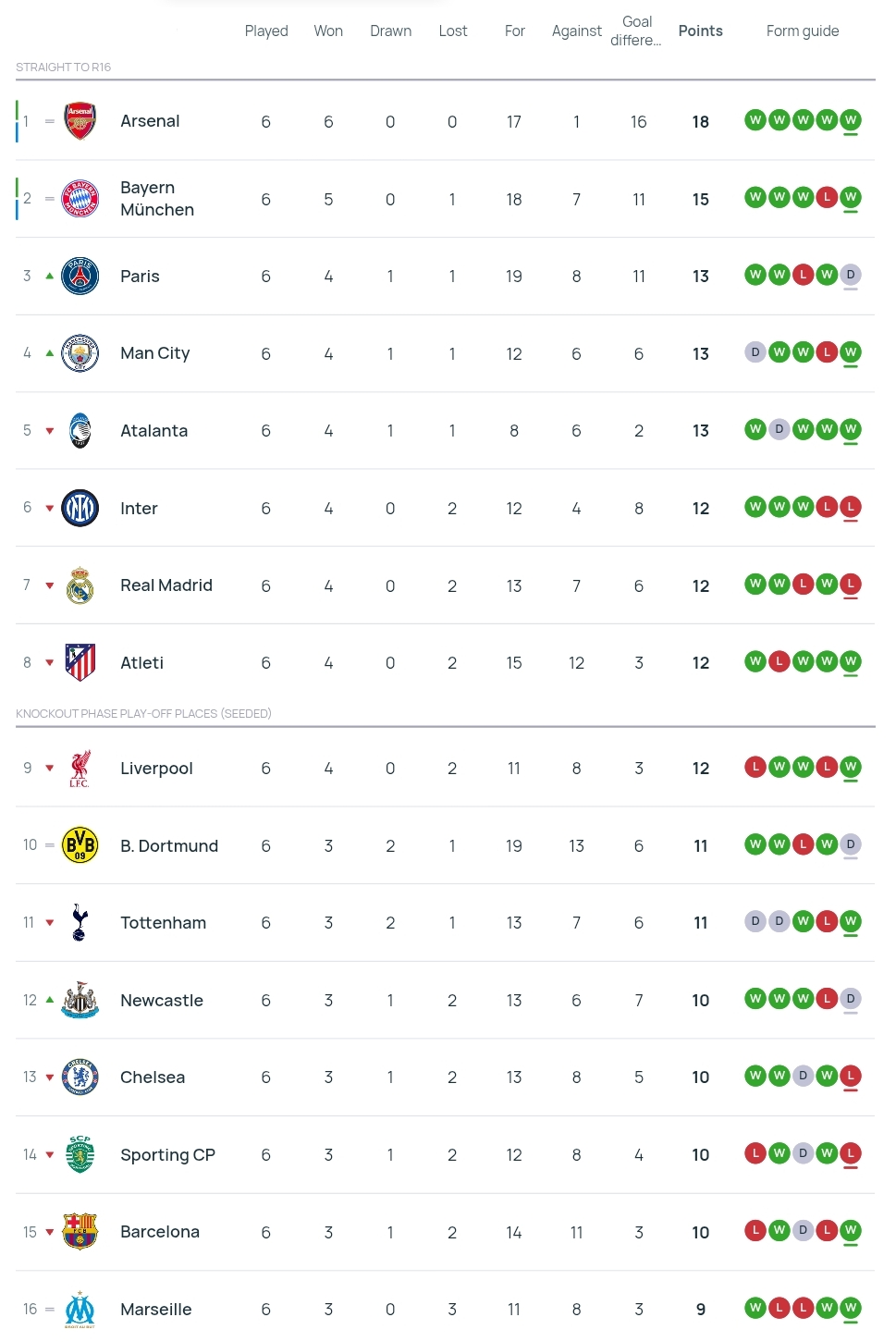 La classifica di Champions dopo 6 turni: matematicamente nelle prime 24!
