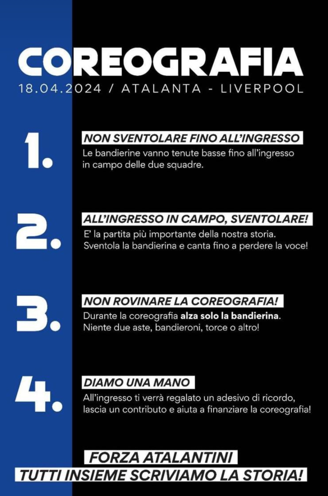 La coreografia di questa sera, i 4 "Comandamenti"