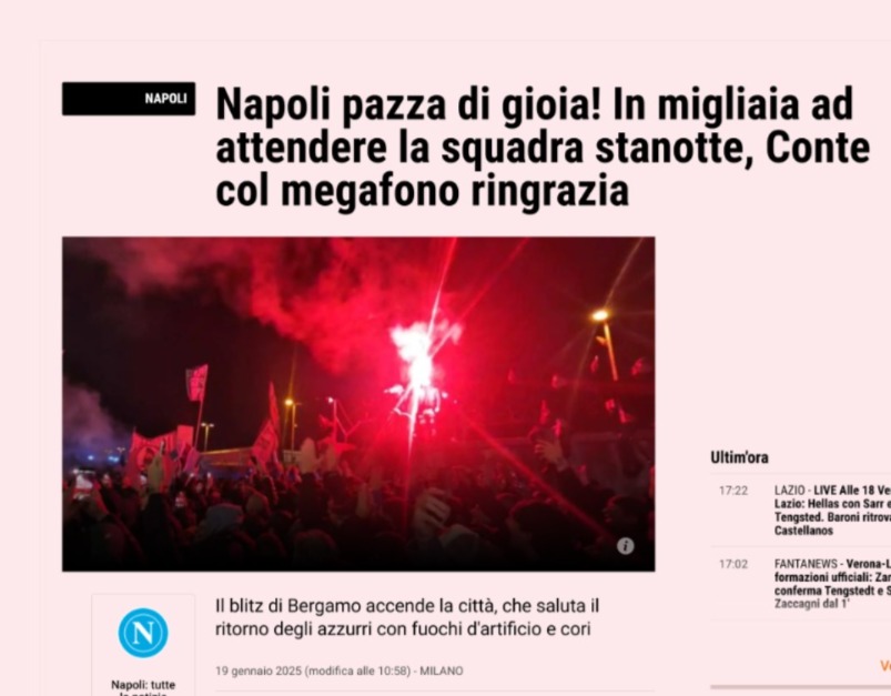 In diversi ci hanno scritto come il giubilo partenopeo rivendichi indirettamente alla nostra squadra lo status di grande ma, in effetti, siamo pur sempre la terza forza del campionato e venivamo da una serie importante di partite senza sconfitte. Inoltre considerate che ieri sera era il sabato prefestivo e aggiungetevi la nota indole napoletana verso feste e tributi.