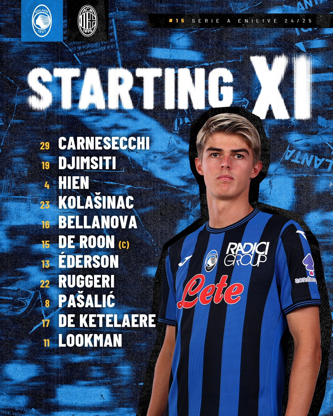 ATALANTA (3-4-2-1): Carnesecchi; Djimsiti, Hien, Kolasinac; Bellanova, Ederson, De Roon, Ruggeri; Lookman, Pasalic; De Ketelaere. Allenatore: Gian Piero Gasperini