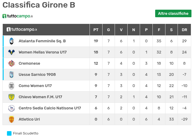 - Como Women - Atalanta 0-10 (Saccomandi 2, Marano, Norscia 2, Fumagalli, Krafia, Asoni, Villa 2)