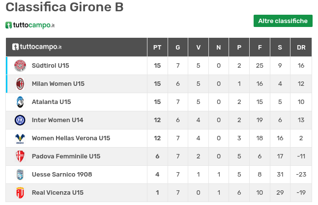 Nell'impegno più recente, l'Atalanta ha ritrovato brillantezza e concretezza, superando il Padova per 3-0 con le reti di Basile, Colleoni e un autogol a favore, confermando l'ottima capacità di reazione delle ragazze dopo le precedenti due sconfitte consecutive. Ora le nerazzurre occupano il terzo posto nel girone per un discorso di scontri diretti, pur avendo 15 punti in 7 partite come Sudtirol a Milan (che ha una partita da recuperare).