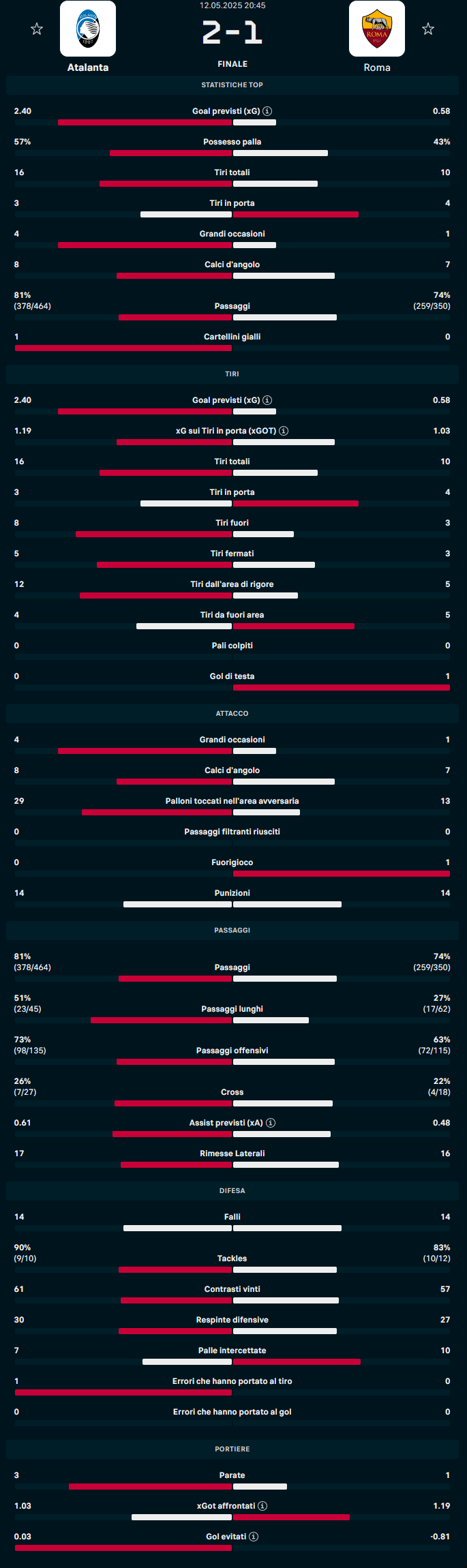 12/05/2025 | 22.44 1 Le statistiche di Atalanta - Roma che ci hanno dato la quinta Champions !!! ES X---> By staff