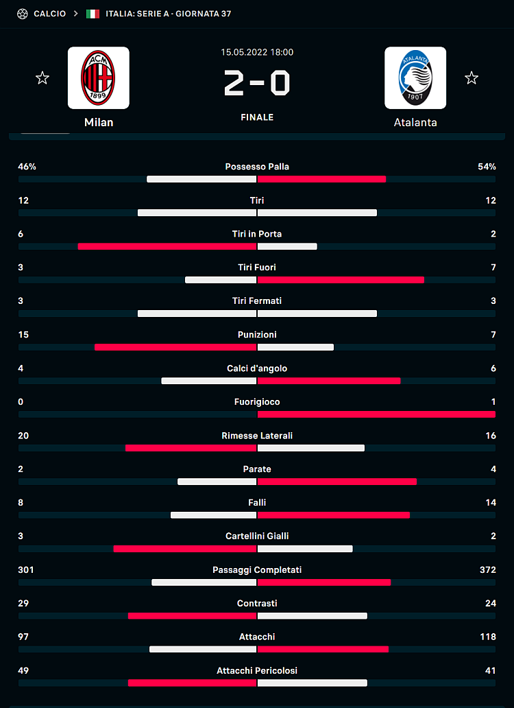 Le statistiche di Milan - Atalanta