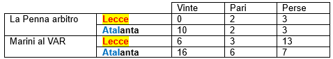 Lecce - Atalanta: arbitra La Penna, VAR Marini (aggiornato con precedenti)