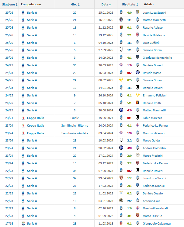 Sarà la sedicesima direzione di La Penna con l'Atalanta, la seconda quest'anno