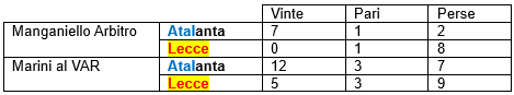 Manganiello arbitra Atalanta - Lecce, Var Marini e Avar Chiffi (aggiornato con precedenti)