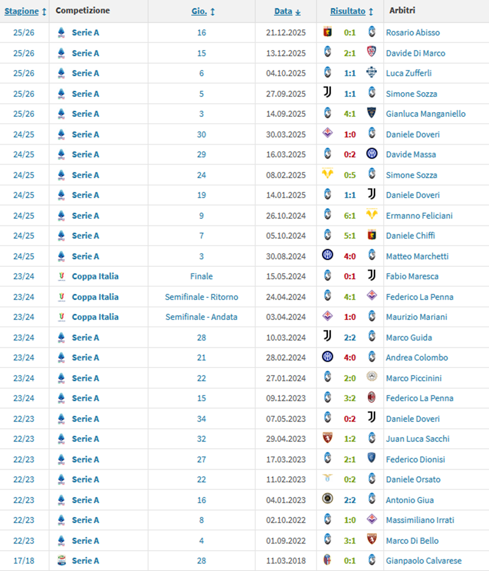 Questi i precedenti di Marchetti da arbitro con l'Atalanta