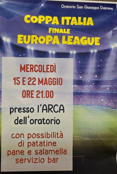 Mercoledì sera sarà possibile assistere alla finale di Coppa Italia, tra l'Atalanta e la Juventus, presso l'oratorio San Giuseppe a Dalmine.