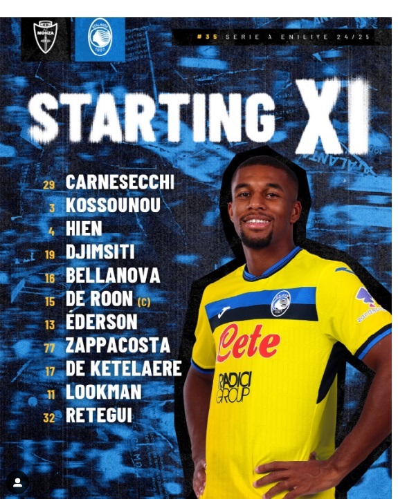 ATALANTA (3-4-3): Carnesecchi; Kossounou, Hien, Djimsiti; Bellanova, Ederson, De Roon, Zappacosta; Lookman, Retegui, De Ketelaere. Allenatore: Gian Piero Gasperini