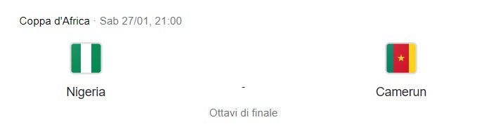 24/01/2024 | 18.57 3 Nigeria - Camerun agli ottavi di coppa d'Africa Sarà il Camerun l'avversario della Nigeria di Ademola Lookman. La partita si giocherà sabato 27/1 alle ore 21:00 By brignuca