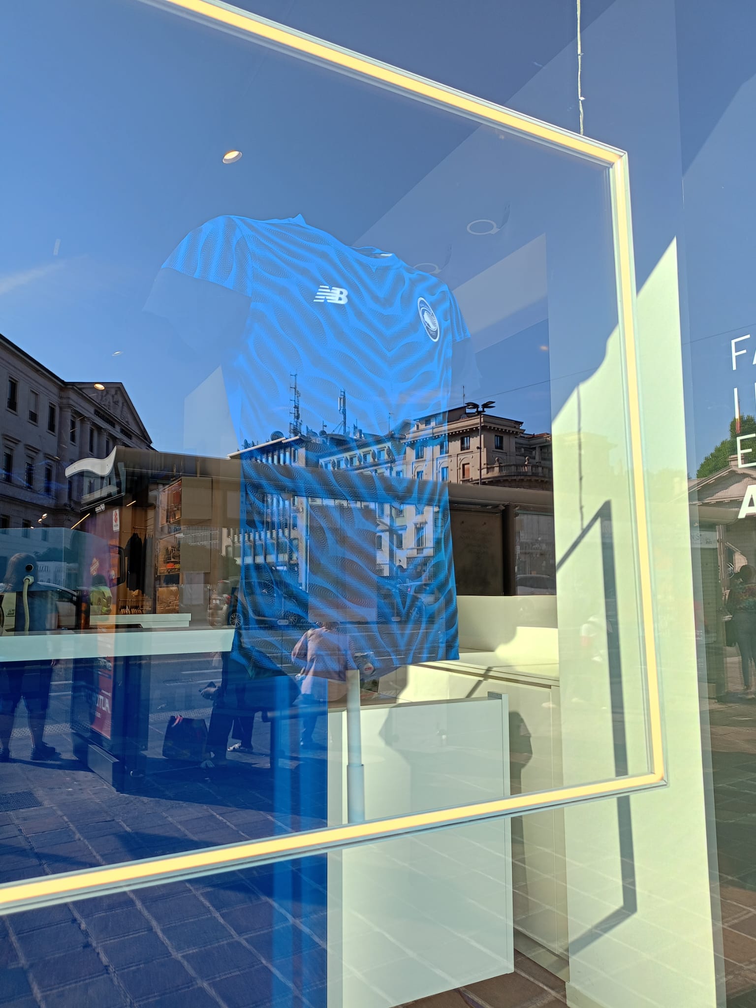 Ecco le vetrine dello store stamattina sfoggiare la nuova linea con il nuovo fornitore New Balance