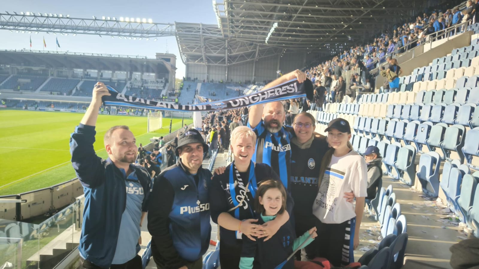 Papa' è il vecchio amico del sito Gabor Farkacs che, nel corso di molti anni, ha convinto amici e parenti a convertirsi alla causa atalantina. Gia' moltissime volte a Bergamo questa volta ci e' venuto con moglie e figlia e si è goduto, oltre alla vittoria, anche una Bergamo alla luce di uno splendido e caldo sole invernale.