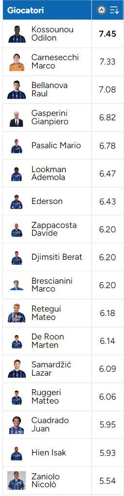 Al contrario dell'MVP ufficiale della partita, SuperMario Pasalic, è Odilon Kossounou ad essersi aggiudicato la palma di migliore in campo per i nostri lettori nella partita contro l'Udinese.