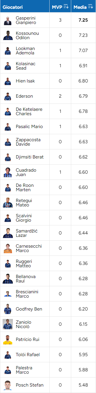 La strepitosa prima fase ha portato molto in alto i voti del Mister e solo un superlativo Kossonou ha rischiato di scavalcarlo alla fine, anche se è mancato nelle ultime partite. Quando c'era si e' fatto valere, eccome.