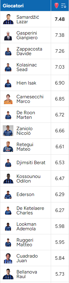 Buona la media di squadra con poche insufficienti tra cui, inaspettatamente Lookman (comunque vicinissimo al 6). "Peggiore" tra i nostri Bellanova, cui i lettori hanno evidentemente attribuito poca incisivita' ed inventiva sulla fascia. Sono comunque tutte insufficiente molto vicine alla sufficienza.