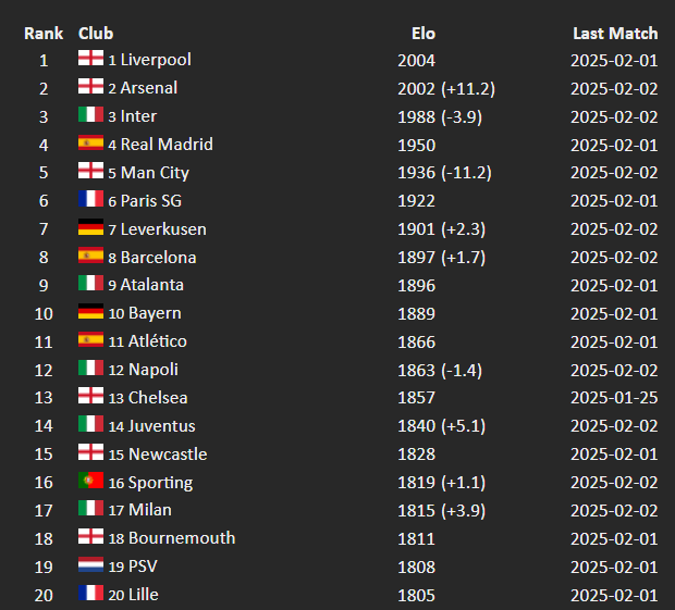L'ELO Rating è di ispirazione scacchistica ed e' stato poi adottato in molti sport rappresentando un sistema di calcolo a volte piu' veritiero delle classifiche ufficiali di merito (in questo caso quella della UEFA)