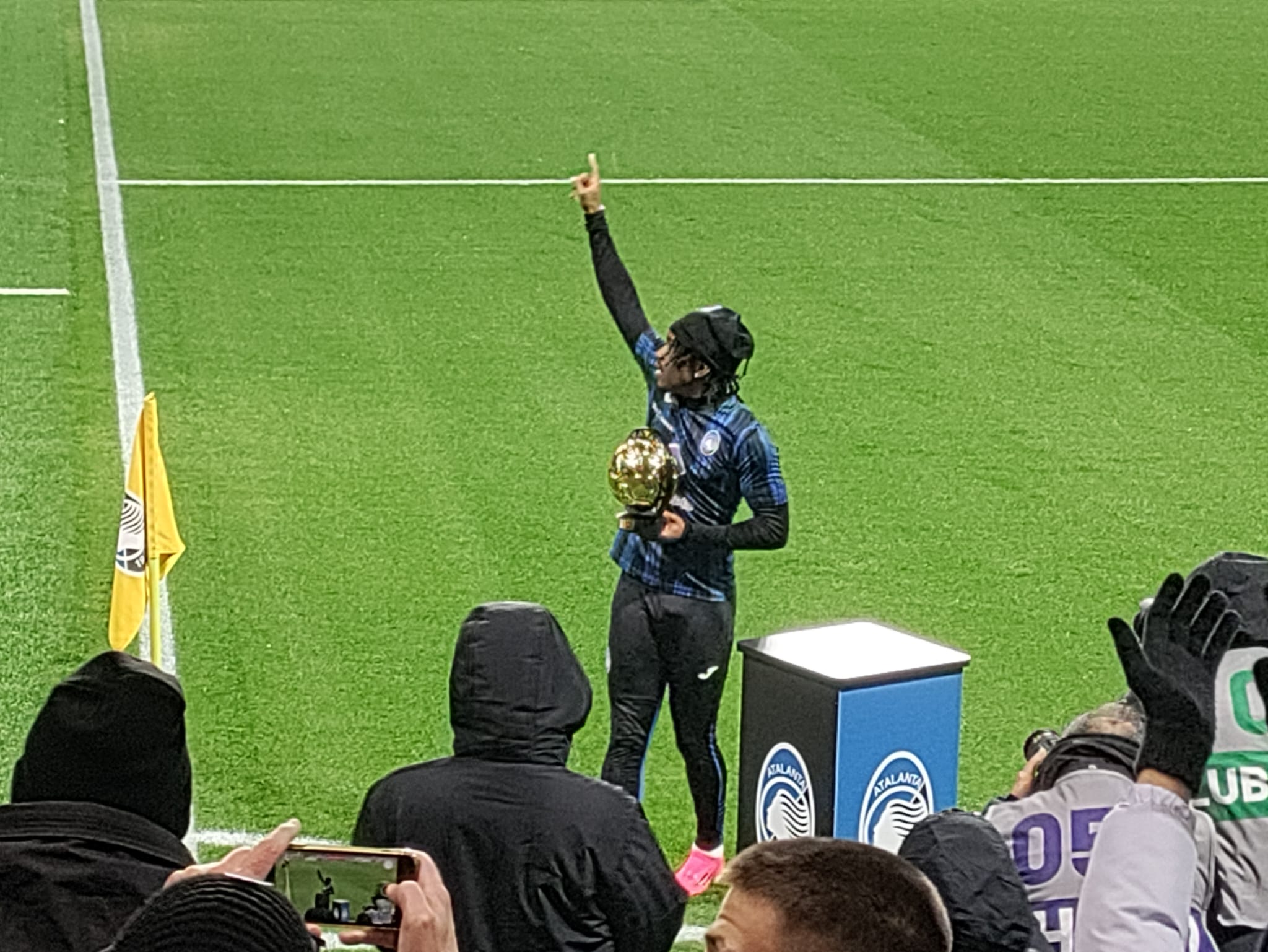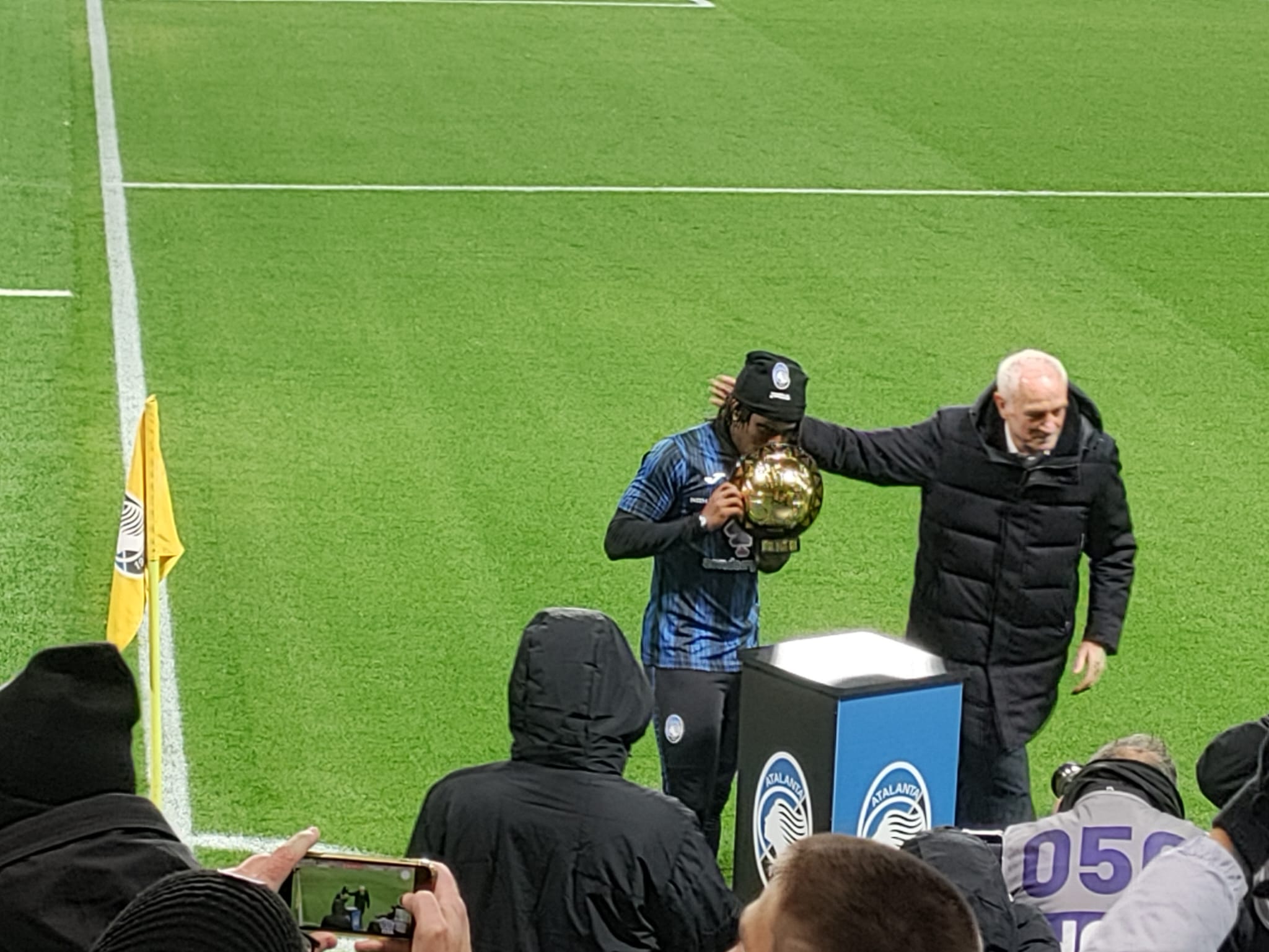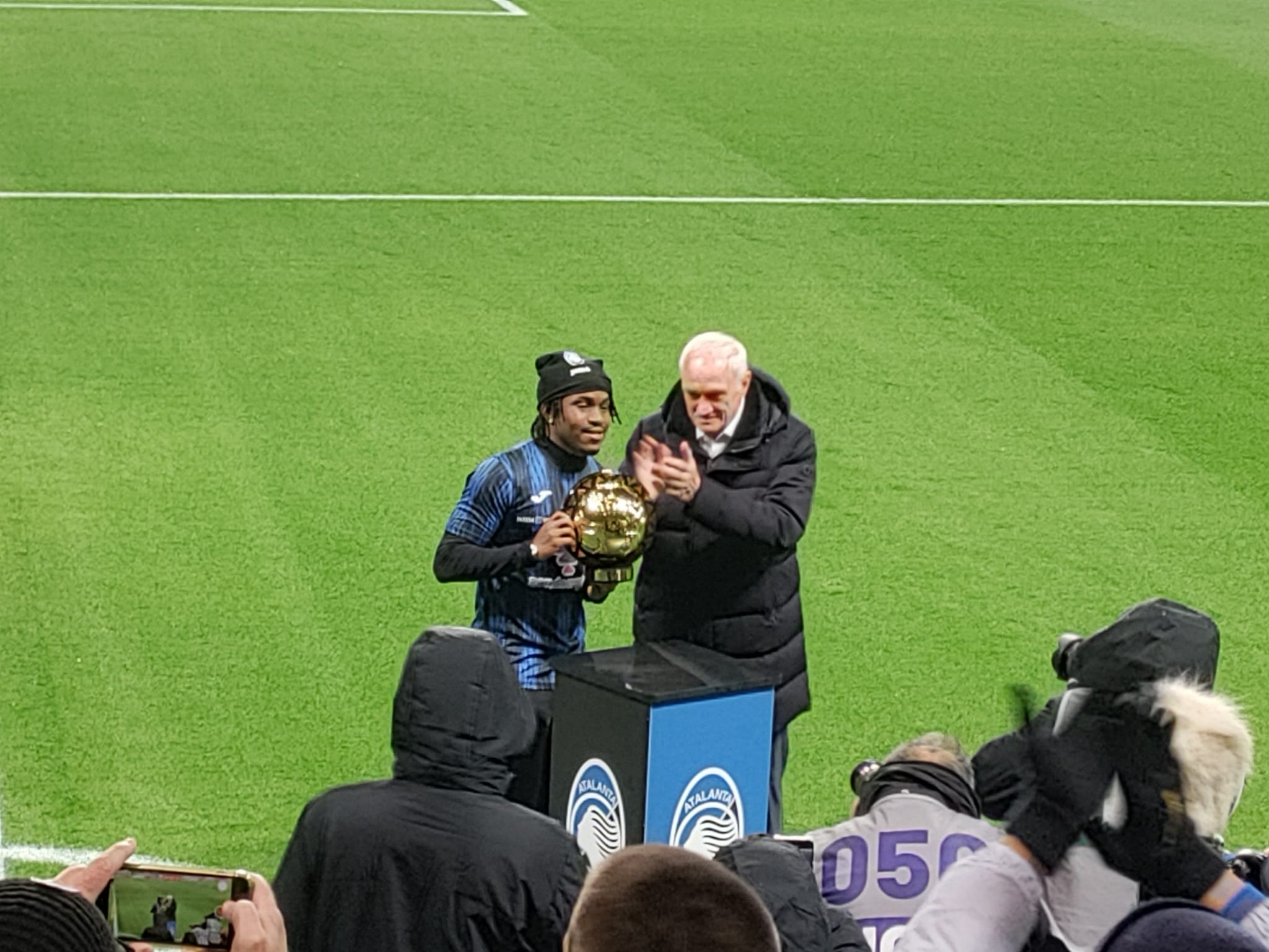 Ademola Lookman ha poi posato per i fotografi con Antonio Percassi e il suo trofeo di Pallone d'Oro africano ricevuto lunedi' dalla confederazione continentale