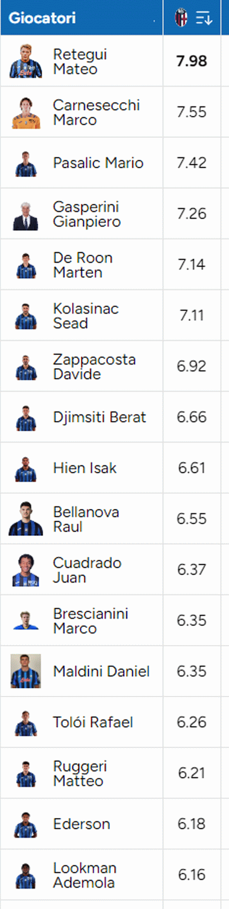 C'erano dubbi per quella che il mister ha definitola miglior prestazione di Mateo da quando e' all'Atalanta? non molti. Tutta sufficiente la squadra che si e' riscattata dalle ultime prestazioni. Il voto peggiore? a Mola Lookman, starà annusando l'approssimarsi del calciomercato?