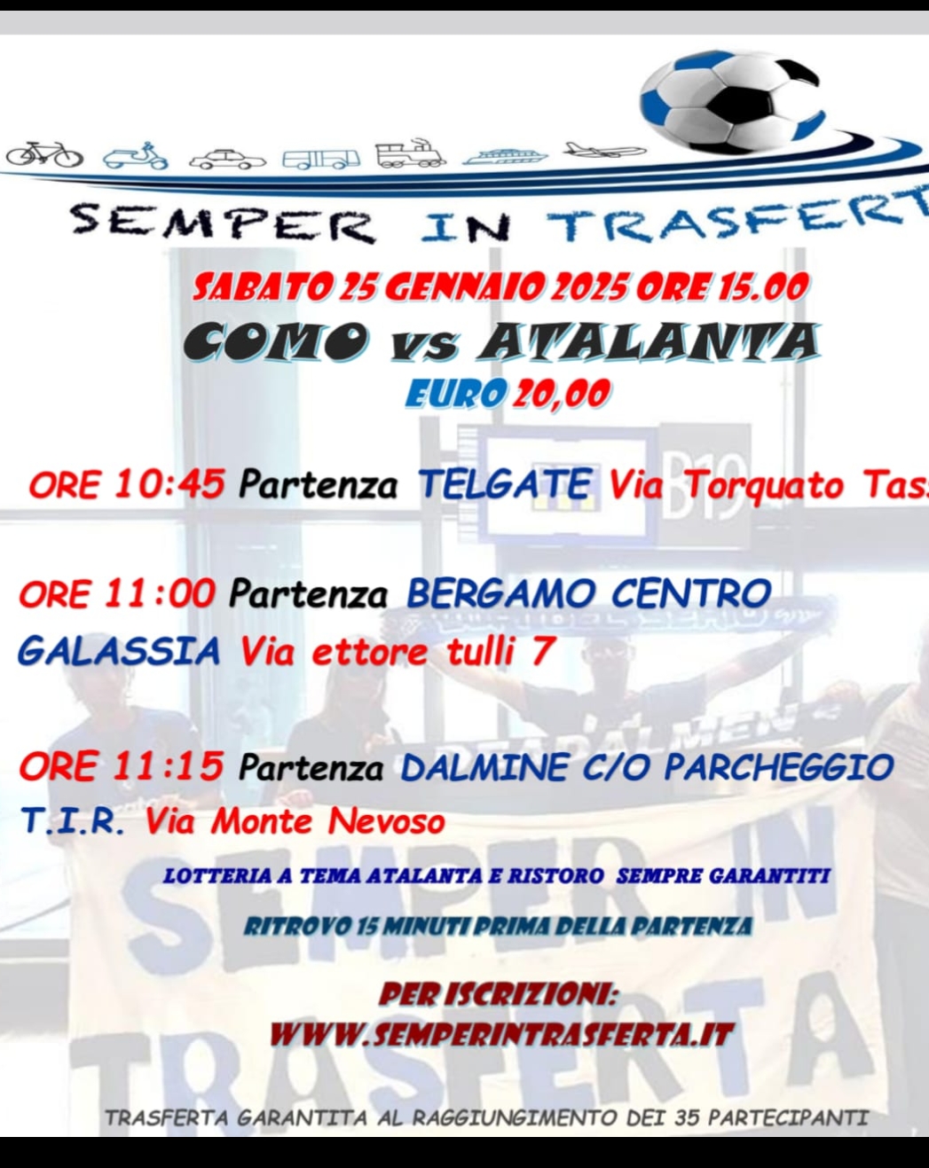 Semper in Trasferta organizza la trasferta per la partita di campionato Como -Atalanta