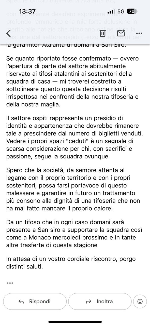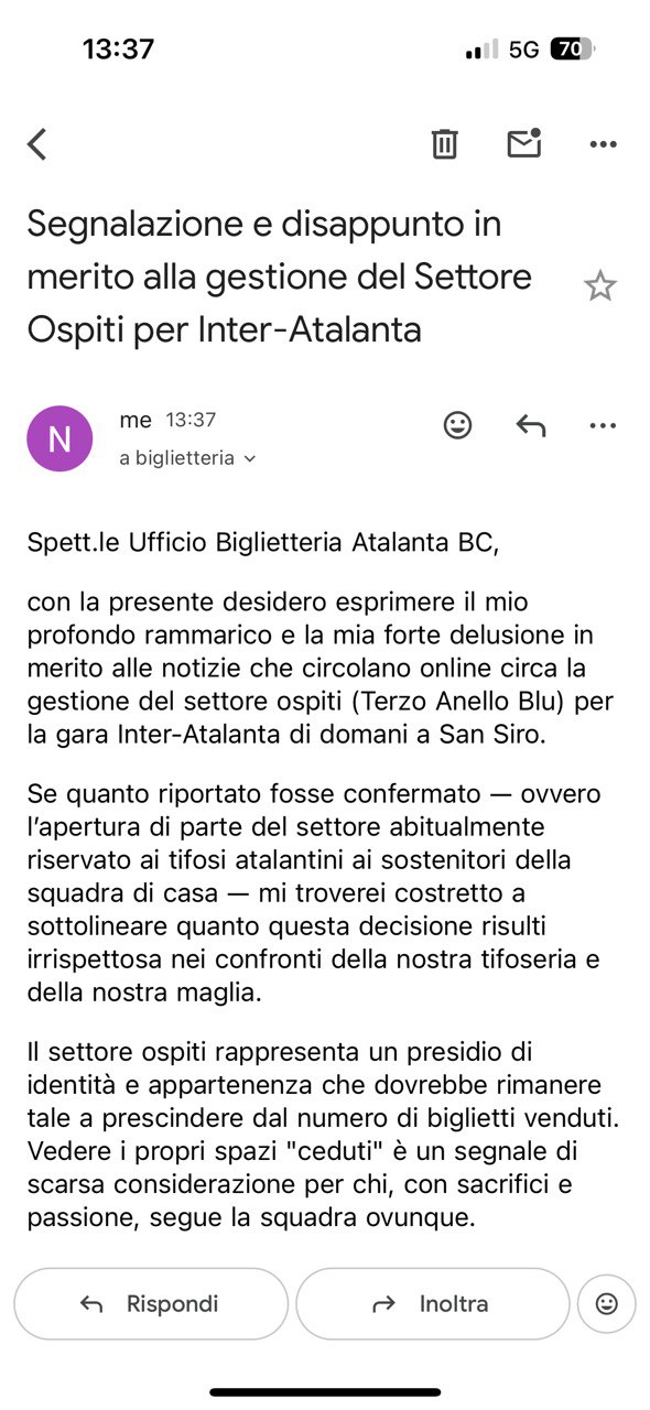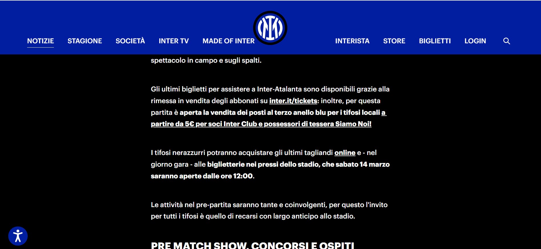 14/03/2026 | 11.51 7 Settore ospiti S.Siro aperto anche agli interisti ??? Segnaliamo quello che stiamo ricevendo By staff