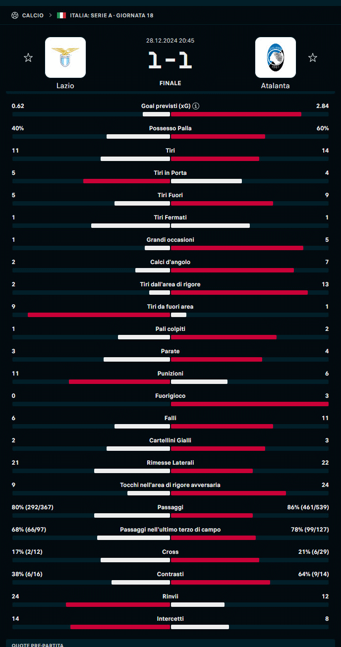 Statistiche nettamente a nostro favore ma vince chi la mette piu' volte dentro