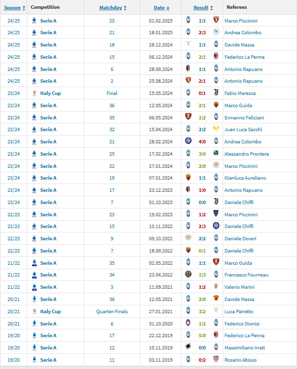 Considerata la particolare "congiuntura" (come direbbero quelli bravi) di una Juventus in netta rimonta (almeno, in campionato), di un momento nostro non eccessivamente brillante e del peso politico di sempre dei nostri avversari, abbiamo raccolto qualche statistica sull'arbitro Sozza e su chi gli dara' una mano ad arbitrare l'incontro