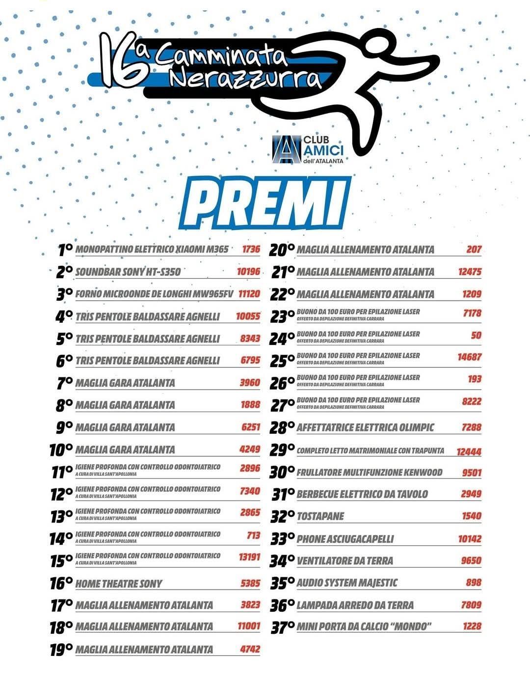 04/06/2025 | 13.00 2 Tutti i premi della Camminata Nerazzurra Per estrazione con i numeri dei partecipanti By staff