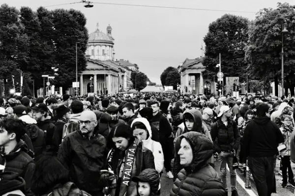 Sono foto in bianco e nero, particolari, ma regalano la Bergamo magica di quella notte