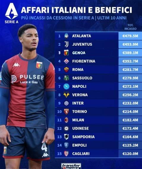 Punto di riferimento comunque spesso criticato per errori di valutazione il sito transfermarkt.it espone da stamattina e tra gli altri, anche il prospetto qui sotto