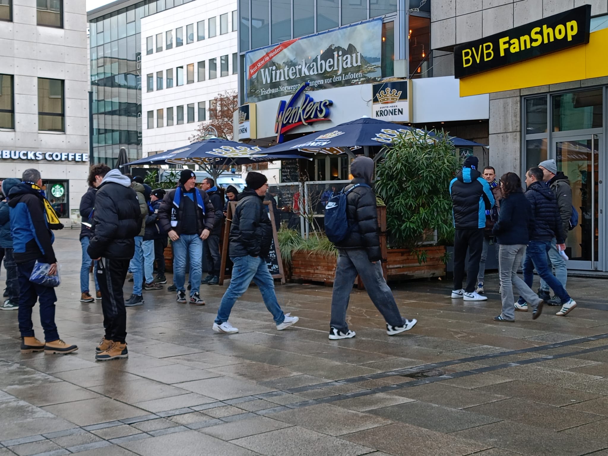 Piu' che un modo di dire, un dato di fatto. Alcuni nostri tifosi si sporgono dalla balconata di una delle torri del centro di Dortmund!