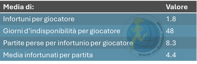 Per fare un riassunto, qualora vi chiedeste quanti sono in totale, siamo arrivati a 48 infortuni (escludendo ovviamente quello di Scalvini del giugno scorso), e considerando una rosa di 27 giocatori e le partite ufficiali giocate finora (48 anche queste), vengono fuori valori medi non indifferenti (eufemismo).
