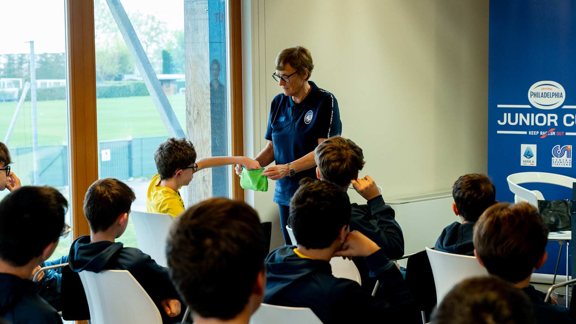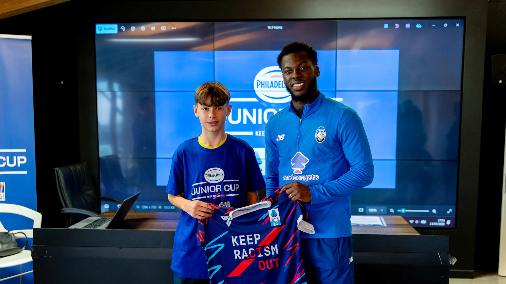 Al termine dell’incontro, i ragazzi dell’Oratorio Curno hanno consegnato a Musah una maglia con il claim “Il calcio è amicizia”, simbolo della competizione e testimonianza concreta del potere dello sport di unire e creare legami autentici, dentro e fuori dal campo. A sua volta, la Lega Serie A ha premiato il capitano della squadra con la divisa ufficiale della Philadelphia Junior Cup - Keep Racism Out, personalizzata e autografata dallo stesso Musah.